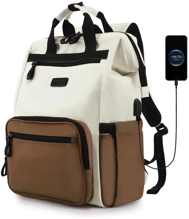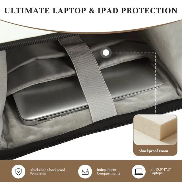 (Tip: power bank is not included! ) ^^ WATER-RESISTANT & DURABLE FABRICCrafted with advanced water-resistant material, this laptop backpack safeguards your belongings from unexpected rain or splashes. The durable fabric is scratch-resistant, color-fast, and designed to withstand daily wear and tear, ensuring long-lasting use. ^^ VERSATILE FOR ALL OCCASIONThe back panel features a luggage strap, allowing you to securely attach the backpack to the handle of a rolling suitcase for easier travel. Whether for daily commutes, business trips, outdoor adventures, or casual travels, this large laptop backpack suits various need.