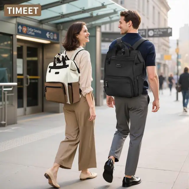SMART & SAFE STORAGE SOLUTIONTimeet's large capacity laptop backpack features 6 compartments with 19 pockets offers organized and clear storage for your laptop, ipad, Phone, 32oz water bottle, umbrella, books, clothes, pens, wallet, and more.
