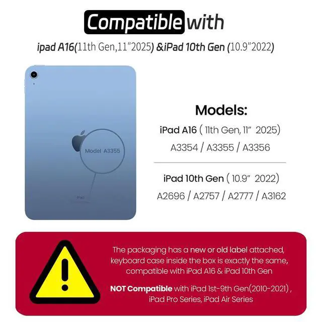 Generation]: Designed for iPad 11th Generation A16 10.9" (2024) and iPad 10th Generation 10.9" (2022). Precise cutouts ensure seamless access to all ports, buttons, cameras, and Touch ID. ^^ [Detachable Keyboard with