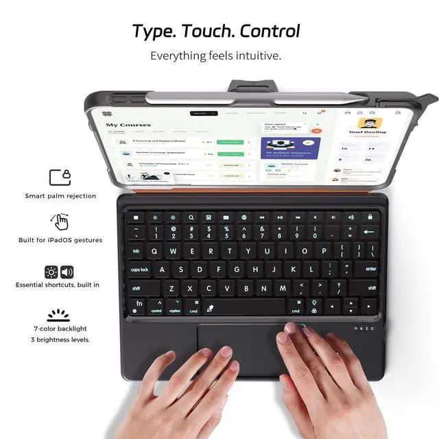 Multi-Touch Trackpad]: Magnetic keyboard easily detaches for quick switching between tablet and laptop modes. Smooth and accurate trackpad gestures improve productivity for business users, teachers, and students. ^^ [7-Color Backlit Keyboard for