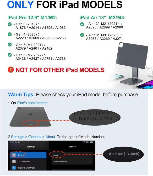 Important Notes: Not compatible with other iPad models. ^^ Magnetic iPad Stand with 18W