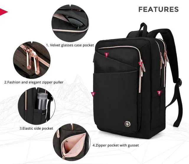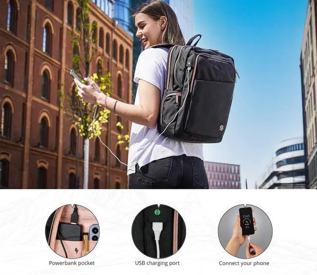 ^^ ADD-A-BAG SYSTEM: Add-A-Bag system convenient your travel. A luggage strap allows you to connect your suitcase to the backpack and thus pull with one hand. Your trip will immediately become much easier and more pleasant. ^^ SWISSDIGITAL DESIGN KATY ROSE backpacks are designed for the new Commuter Urban Traveler. Take your laptop, tablet, cell phones, books, water bottle, mask and other essentials in your backpack for local trips to cafes, hangouts, parks, beaches, lakes, mountain trails or other places. ^^ USB CHARGING PORT US PATENT NO. US 10, 574, 071 B2; US 10, 931, 137 B2; US 10, 931, 138 B2; US 11, 601, 009 B2.