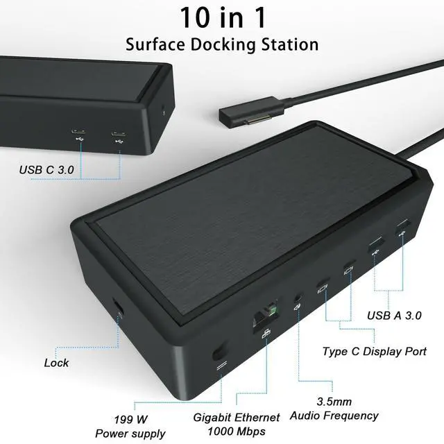 Compatibility: Simply connect your Surface device to the Surface Dock 2 using the Surface Connect cable (included), and you're ready to go. Compatible with Surface Laptop Studio 2/Studio, Surface Laptop 7/6/5/4/3/2+/2/1, Surface Pro 12/11/10/9/8/7+/7/X/6/5, Surface Laptop Go 3/2, Surface Laptop Go, Surface Go 4/3/2/1, Surface Book 3/2/1 ^^