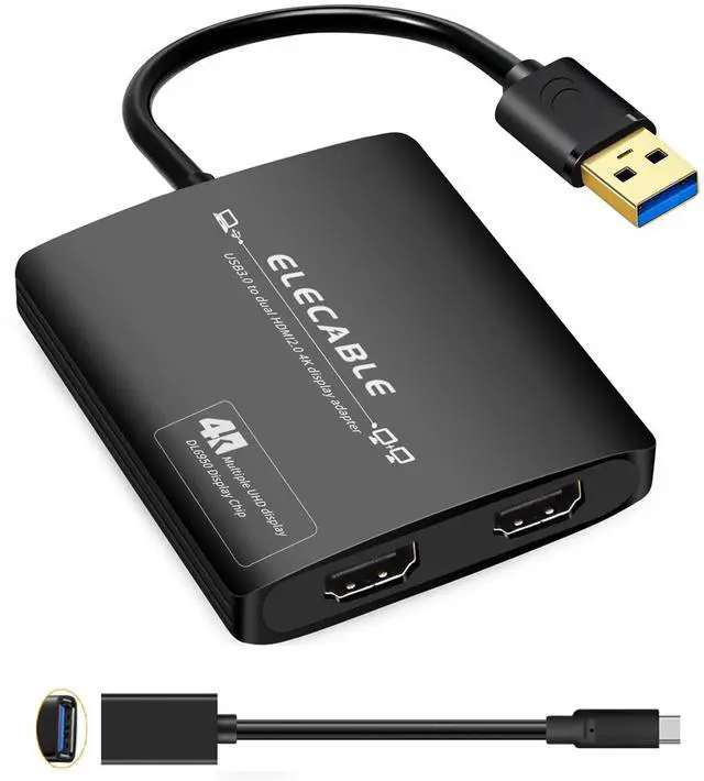 USB 3.0 to Dual HDMI adapter allows you extend or mirror your desktop to two HDMI monitors using a single USB/USB C port. It supports resolution up to 4K@60Hz for both HDMI. It supports max six monitors if you use three adapters. In addition, the package comes with a USB C to USB adapter, which makes it easier for you to use on a computer with a USB C interface.