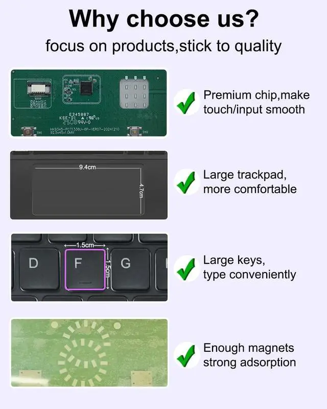 Premium material: premium outside and inside material and shaft to ensure product using experience and durabilitylarger, perfectly spaced keys with scissor mechanism provide the perfect bounce to ensure smooth and accurate typing. ^^ Precise Hole Cut, Magnetic Buckle with Pen HolderThe mold of back cover is made according to real iPads appearance, so the cover has precise cutouts and buttons, On the top of keyboard back cover, there is a magnetic buckle on which you can insert pencil, so you can place and take out stylus at any time without worrying about losing it, providing good protection and convenience for daily use ^^ Trackpad settingsAfter connecting to Bluetooth, a "trackpad" option will appear in your iPad Settings General. After opening it, you can adjust the speed of the trackpad. Turn on or off the "Natural Scrolling", "Tap to Click", and "Two Finger Secondary Click" buttons as needed. Press fn + spacebar to lock or unlock the trackpad.