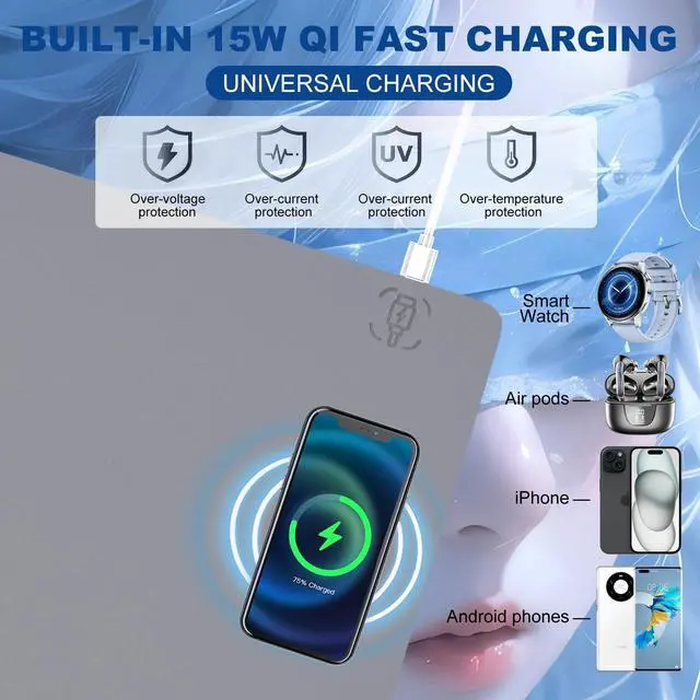 • Wireless Charging: This mouse pad stands out from the rest with its integrated 15W wireless charging feature, compatible with a wide array of devices that enable wireless charging. It's more than just a mouse pad; it's a versatile charging companion! Please note that for optimal charging performance, a 9V 2A power adapter is recommended (not included)