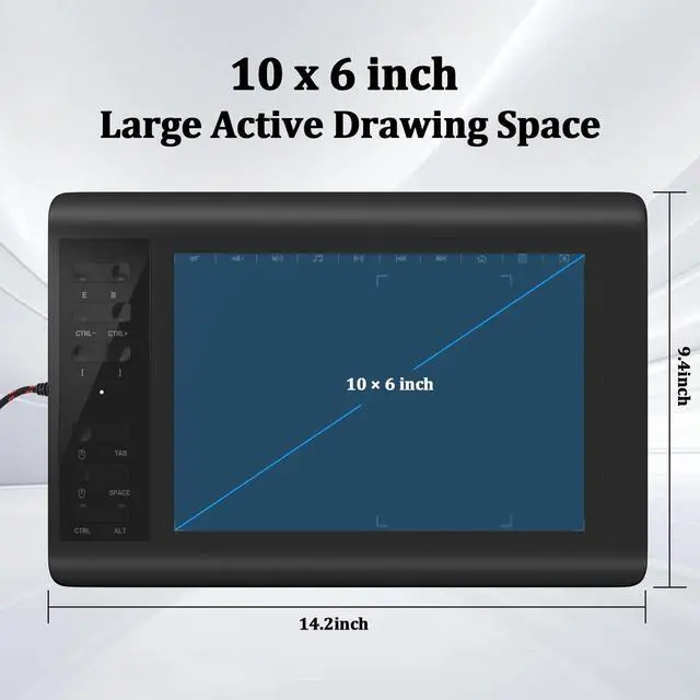 Large Active Drawing Space: IMAGE graphic drawing tablet features 10 x 6 inch large active drawing space with papery texture surface, provides enormous and smooth drawing for your digital artwork creation, offers no-lag sketch, painting experience. ^^ 8192 Passive