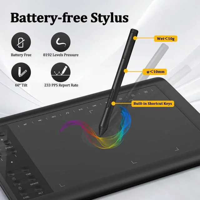 ^^ Convenient Shortcut Keys: Designed with 12 customizable shortcut keys and 10 multimedia Keys (Only Compatible for Windows), provides more convenience to help improve productivity and efficiency when creating tablet drivers with graphics tablet that allow shortcuts to many different software. ^^ Compatible with