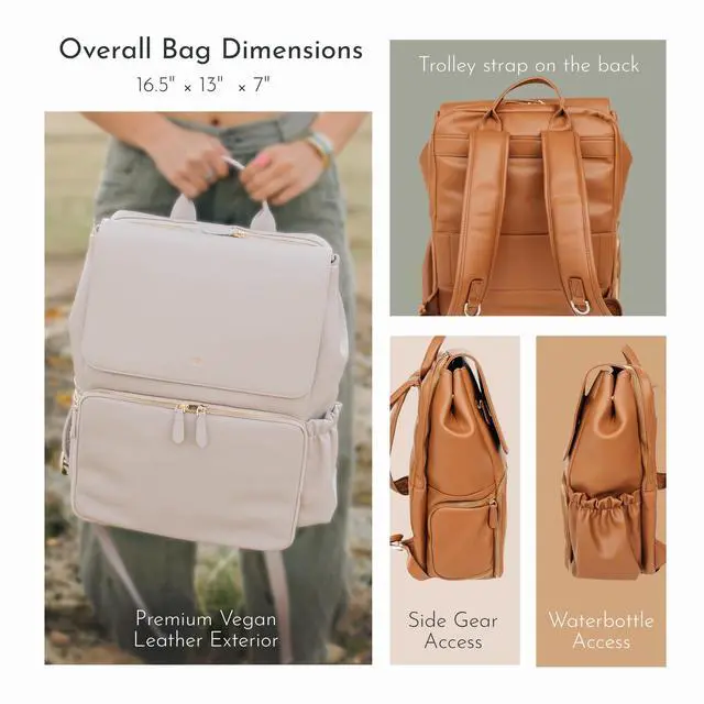 PREMIUM VEGAN LEATHER Stylish, cruelty-free construction with gold-durable hardware ensures your bag stands up to wear while looking professional. ^^ CUSTOMIZABLE GEAR COMPARTMENT Keep your equipment safe and organized with adjustable dividers in the bottom compartment for lenses, cameras, and more. ^^ QUICK ACCESS SIDE OPENING No more missed shots! Easily access your camera gear through the side zipper without opening the entire backpack. ^^ LAPTOP COMPATIBLE Dedicated padded laptop compartment fits devices up to 16 inches, ideal for on-the-go editing and creative work. ^^ DESIGNED FOR TRAVEL Equipped with a trolley strap for easy attachment to luggage and a water bottle holder, making it perfect for photographers on the move.