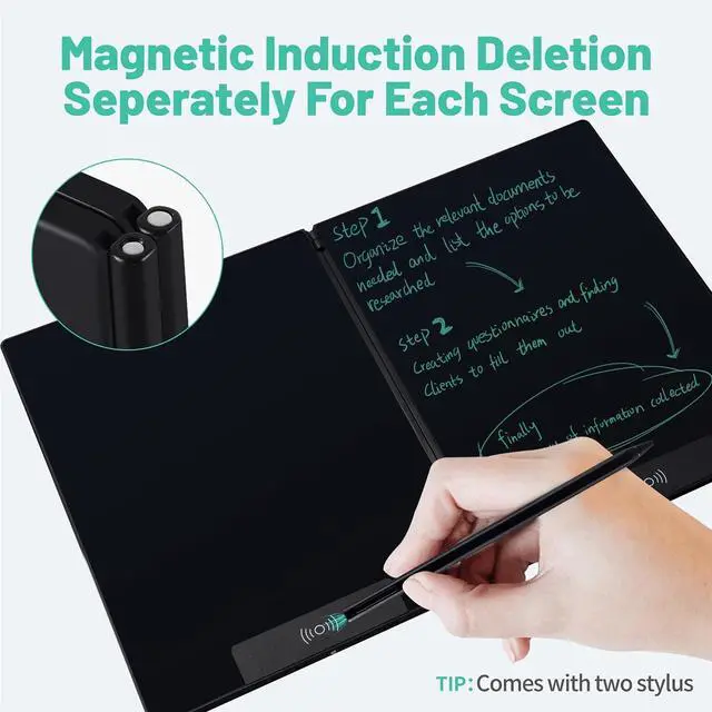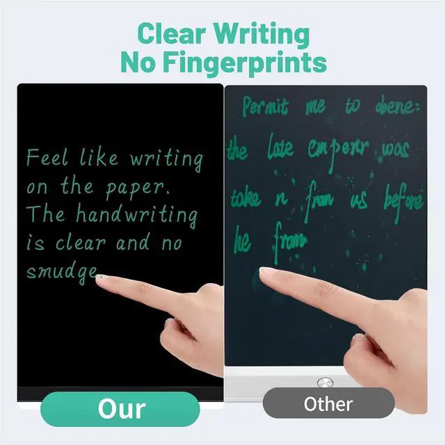 Effortless Non-Touch Erase: This writing tablet allows you to clear the screen instantlyno direct contact needed. Each side of the writing tablet features a dedicated erase key, giving you independent control over dual screens for smooth, convenient operation. Plus, with individual lock buttons on both sides, you can prevent accidental erasures.