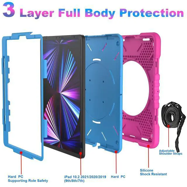 Precise Cutouts: The new iPad 11 inch ipad pro case is made of high quality TPU and non-slip silicone, which is not only shock/shock/durable to provide full body protection for your ipad pro 11 inch case 1st/2nd/3rd generation, but also keep your grip comfortable. All ports have precise cutouts for easy access to all buttons, speakers, cameras and sensors. ^^ 100% Satisfaction Customer ServiceWe provide this iPad pro 11 2021 case with free adjustable shoulder straps to make it easy for you to use your iPad while traveling outdoors, working and playing with your kids. If you have any questions about our ipad case, please contact us immediately. We will definitely give you a satisfactory answer! The colorful colors are suitable for all ages. Ideal gift for birthdays, Valentine's Day, Christmas or other special occasions.