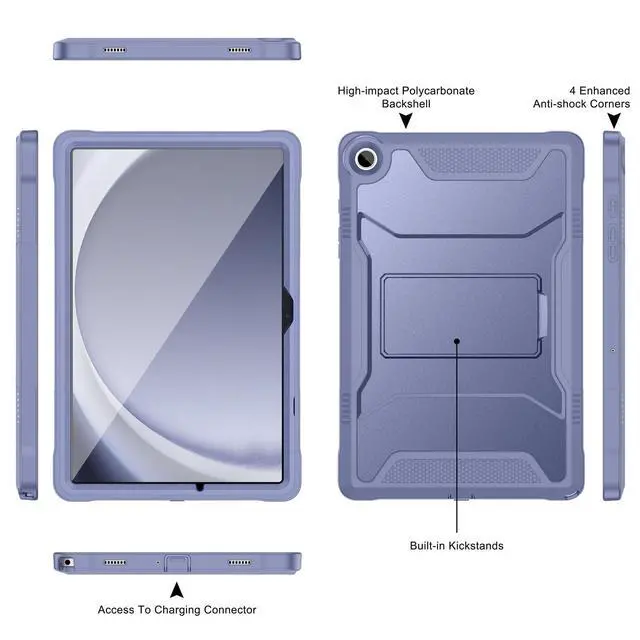 CompatibilityExclusively designed for Newest Samsung Galaxy Tab A9 Plus 11 Inch(SM-X210/X216/X218, 2023 Released)ONLY. Please kindly check the model number SM-X*** at the Setting of the tablet before purchase ^^ Rugged Armor Full Protection Multi-layered hard PC back and flexible TPU bumper provide full protection against drops, bumps, and impacts, also easy to install ^^ Built-in Screen ProtectorPrevents your New Galaxy Tab A9+ 11 Inch screen from scratches without compromising sensitivity and provides full protection ^^ Built-in KickStand Functional pop-out kickstand with dual stand angles for easily enjoying movies and better working. FREE YOUR HANDS ^^ Precise Cutouts Precise cutouts and design allow easy access to all ports, sensors, speakers, cameras without removing the case