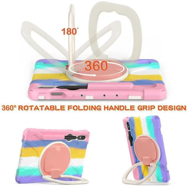 [Compatibility] Exclusively designed for Samsung Galaxy Tab S9 11'' 2023 (SM-X710/X716B/X718U) 2023 Release Tablet and Galaxy Tab S8 11 inch Model SM-X700/X706 2022 Release and Samsung Galaxy Tab S7 11 inch Model SM-T870/T875/T878 2020 Release Tablet. Please kindly check the model number SM-T*** on the tablet Settings >> "About Tablet" Before Purchase To Ensure You Get The Correct Size. S Pen is not included. Screen Protector is not included. ^^ [Multi-Function Features] 360rotating +180folding grip can be used as a handle, easy to hang your Tablet in kitchen, washroom, bedroom; Kickstand is stable enough to stand on different surfaces for children to view.