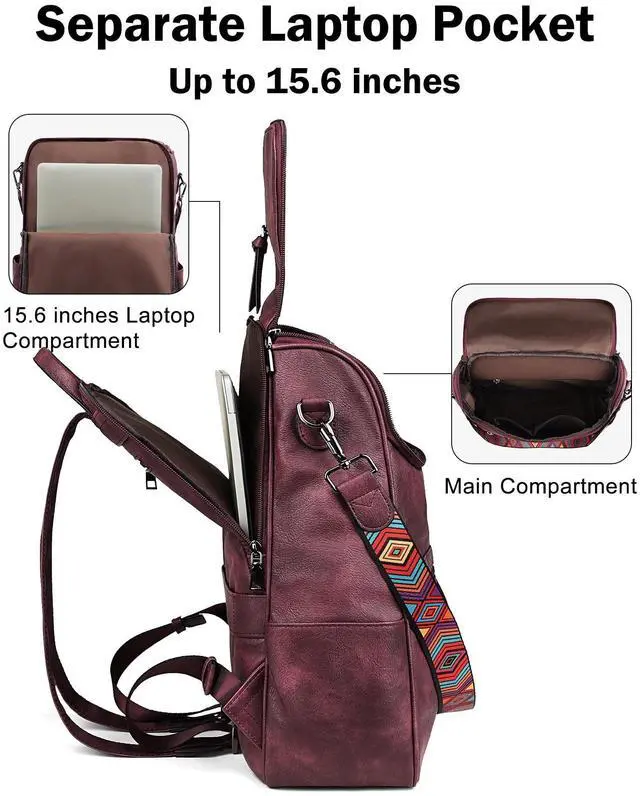 ^^ Shoulder Backpack: This backpack laptop bag for women with a detachable strap can be converted into a shoulder backpack or handbag to meet the needs of different occasions. So the leather laptop backpack with laptop sleeve suitable for a variety of occasions, such as shopping, work, travel, dating, camping, dancing or hiking, for 2-3 days business trip.