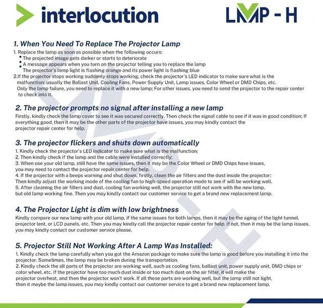 • LMP-H projectors' bulbs are made of the highest quality materials and have the same functions as your original bulbs. They are perfectly matched and compatible with your projector