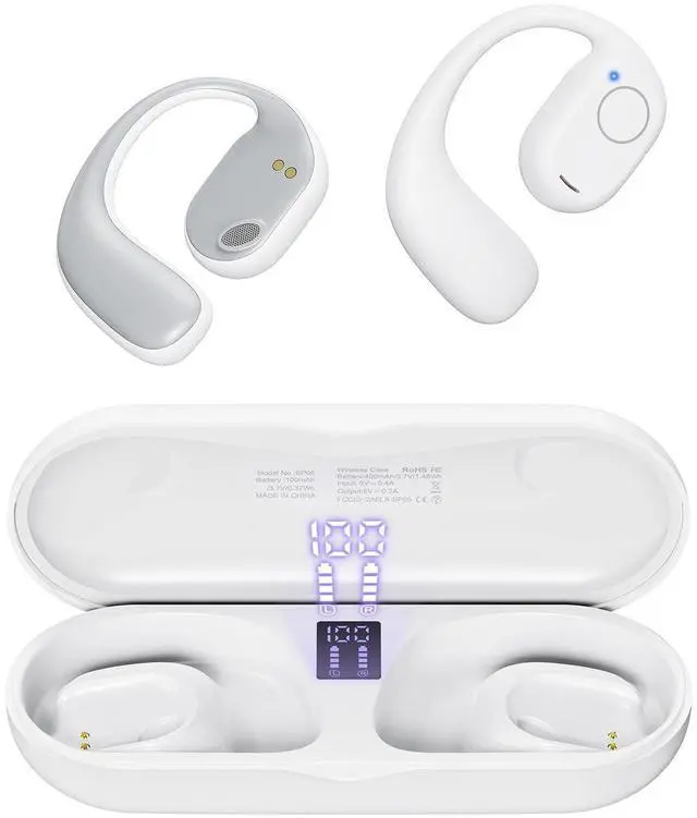 Open-Ear Headphones With Ultimate Comfort - When it comes to true open-ear headphones, PSIER white open-ear headphones are the epitome of comfort. With a design that allows for breathability and a lightweight build, you'll forget you're even wearing them. ^^ 40 Hrs Playtime And Digital Display Charging Case - With an impressive 40 hours of playtime and a charging case that displays the battery status, PSIER white open-ear headphones are designed to keep up with your active lifestyle. No need to worry about running out of battery during your workouts or adventures. ^^ Powerful Stereo Sound With 16.2 mm Speakers - Immerse yourself in powerful stereo sound with the 16.2 mm speakers of open-ear earbuds.