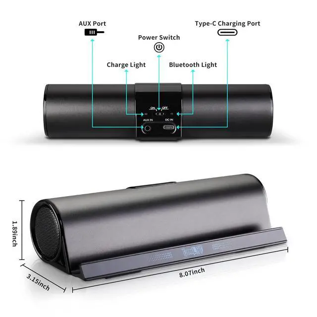TRUE PORTABLE DOCKING SPEAKERWireless Bluetooth speaker with stand function makes it convenient to watch movies or videos and play games. Easy and convenient to carry with for use at home and travel. Let your hands free! ^^ BLUETOOTH AND AUX INPUTStandard 3.5 mm Auxiliary input for you to connect external non-Bluetooth audio devices, such as MP3/4, computer, Notebook, PSP (cable included). Stereo bluetooth and support wire input, The speaker power 3w x 2, sound quality is great. ^^ PROF DESIGN FOR STATION SPEAKERProfessional stereo sound design with perfect sound enables to enjoy music and movie at any moment.