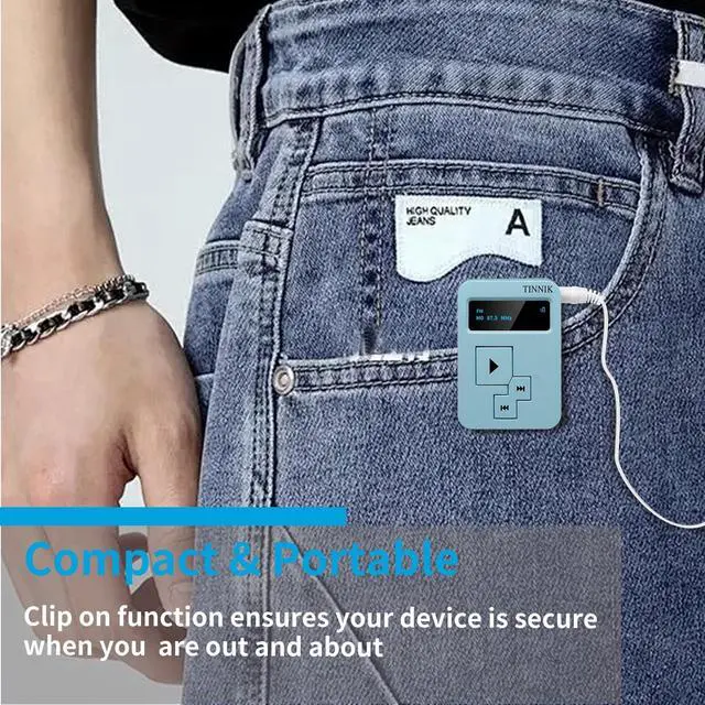 The device is easily operated through several simple buttons. ^^ 4. [Clip and lockable screen]---- The lock button design prevents accidental operation when you put the radio in your pocket. Equipped with a back clip, it can be carried around for fitness, running, cycling, gardening and traveling. Ever want to go to the gym and listen to the radio, but not want to bring around your phone? Or ever had to awkwardly hold your phone while you're trying to walk your dog and pick up its business? This device is the perfect solution to all that. ^^ 5. [Compact and Mini] --- Only 4.8 x 3.5 x 1.5 cm in size with a weight of 27 g ( 1.88 x 1.37 x 0.59 inch and weight of 0.95 oz) only. This pocket radio is around the size of an apple watch. You can slip it into or clip it easily onto any pocket, handbag or glove compartment. It is also an ideal gift idea for birthdays, anniversaries, people looking for something a bit more unique, special holidays, or just because'.