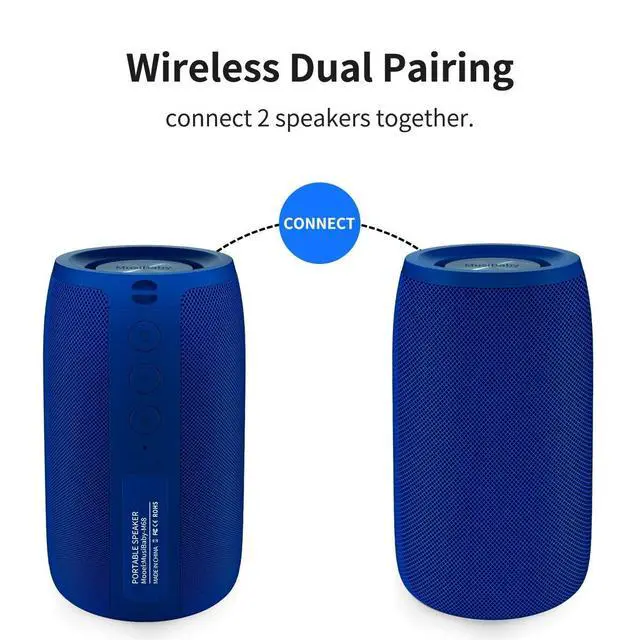 Perfect for the gym or outdoor fun, it creates immersive audio with rich bass, clear mids, and crisp highs. At max volume, it feels just like a live concert. Youll love MusiBabys true 360 stereo sound wireless speakers with bluetooth. This portable speaker is also a great choice for gifts for women or men. ^^ WIRELESS SPEAKER with DUAL PAIRING FUNCTIONConnect 2 bluetooth speakers wireless together, they would play together at the same time! Every time two speakers bluetooth wireless are turned on, they will be connected automatically by themselves before they connect to any other bluetooth devices.