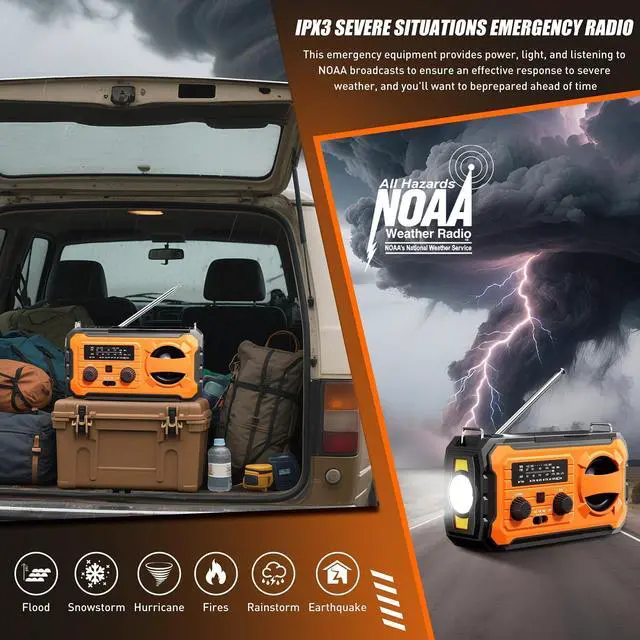 NOAA Emergency Weather Radio: It has standard analog tuning of AM/FM/NOAA weather channels. Solar radios and hand crank emergency radios with extended antenna design enhances signal reception designed to receive emergency warnings for various life-threatening weather events such as cyclones, hurricanes, tsunamis, and other weather. Whether it's a bad weather or any emergency, this emergency preparedness items will give you peace of mind.