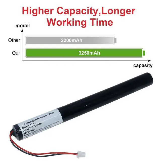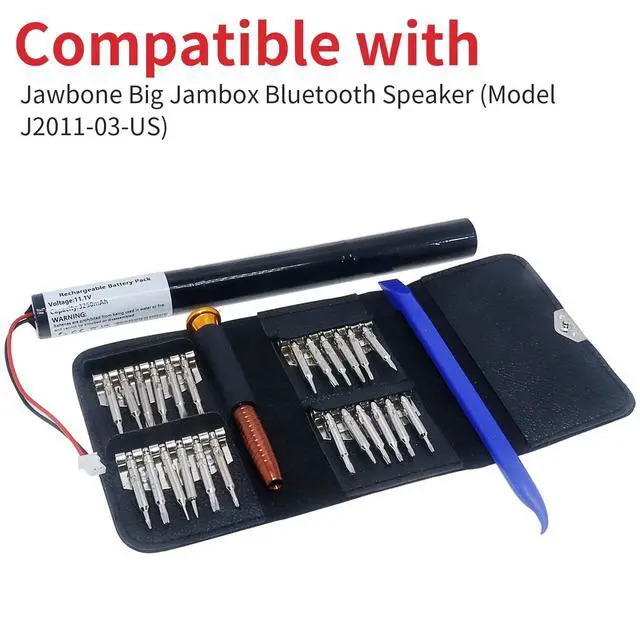 3250mAh Li-ion battery, the original, extending your Big Jambox speakers runtime for more music, less charging! ^^ Designed specifically for Jawbone Big Jambox Bluetooth Speaker (Model J2011-03-US), ensuring seamless compatibility and optimal performance. ^^ Features built-in voltage detection & delay circuits to prevent overcharging, overheating, and ensure stable power output. ^^ Simple plug-and-play replacementjust remove the old battery and install the new one in minutes! No tools or expertise required. ^^ High-quality Li-ion cells deliver consistent power, longer lifespan, and reliable performance, bringing your Jambox speaker back to life!