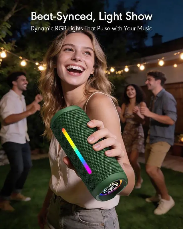 Wireless Stereo Pairing: Elevate any party or gathering with dynamic RGB lights that pulse to the beat. For immersive outdoor or indoor sound, use TWS pairing to wirelessly connect two speakers, creating a powerful stereo soundstage. ^^ Advanced Bluetooth 5.4
