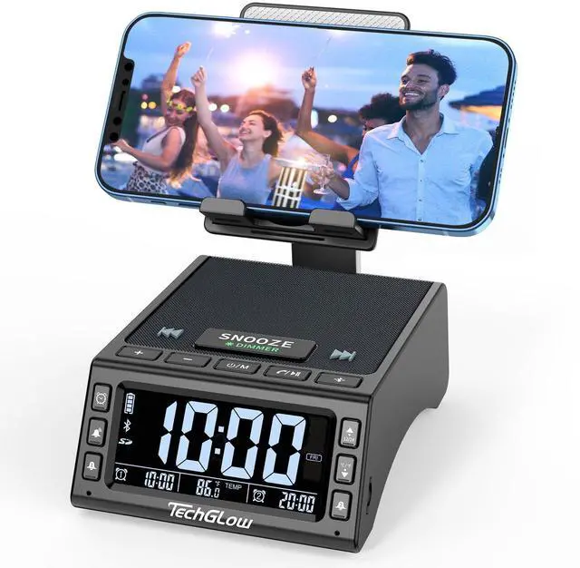 The phone speaker stand for desk is a very useful gadget when you take cooking lessons, make up lessons and other DIY lessons. You can easily follow them step by step without holding the phone, hands free. ^^ Dual Alarm Clock with LCD ScreenThis digital dual alarm clock can set 2 different alarms, convenient for family members with different schedules. A basic clock with enough practical functions for daily use: 5-level adjustable alarm volume, 4-level digits brightness dimmer, SNOOZE function for extra 5 mins sleep, room temperature sensitive, 12/24H function is also available. ^^ Charging Station-Play While ChargingGet your smartphone or tablet charged while watching videos or playing music with this Bluetooth speaker charging dock. No more worrying about phone battery running out in the middle of having fun.