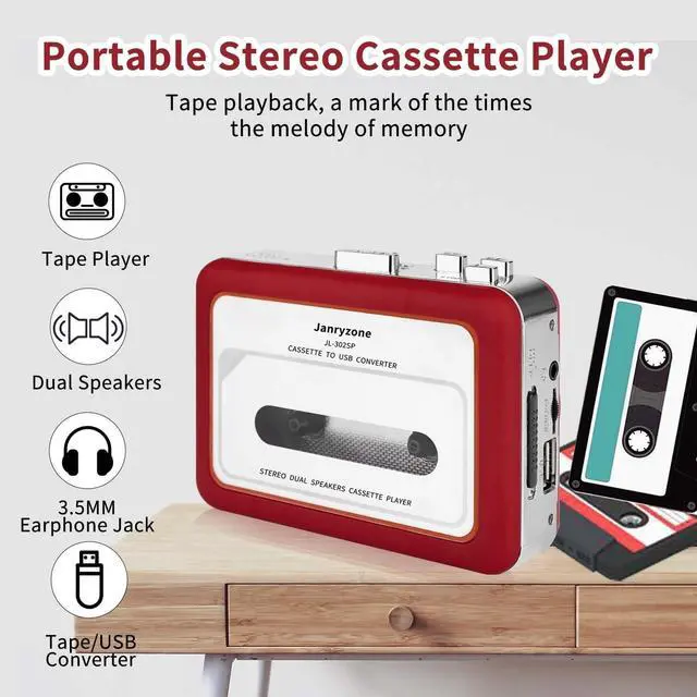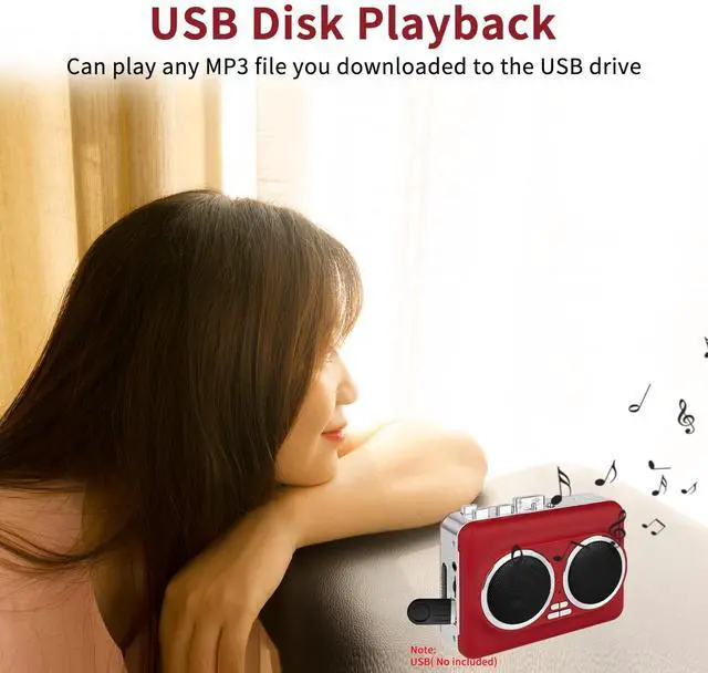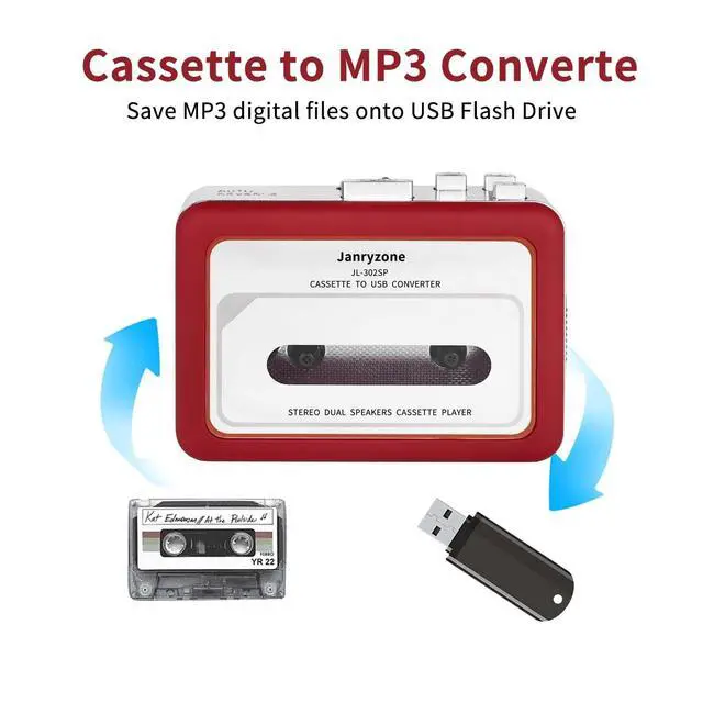 ^^ Compatible With 3.5 mm AUX Inputs Connect seamlessly with earbuds, headphones, or car speaker systems via standard 3.5 mm AUX input for clear sound quality across multiple playback devices. ^^ USB Interface For Easy ConversionSimply insert a USB drive or a USB card reader with storage card (not included) to convert cassette music into MP3 format directly onto the USB, no computer needed.