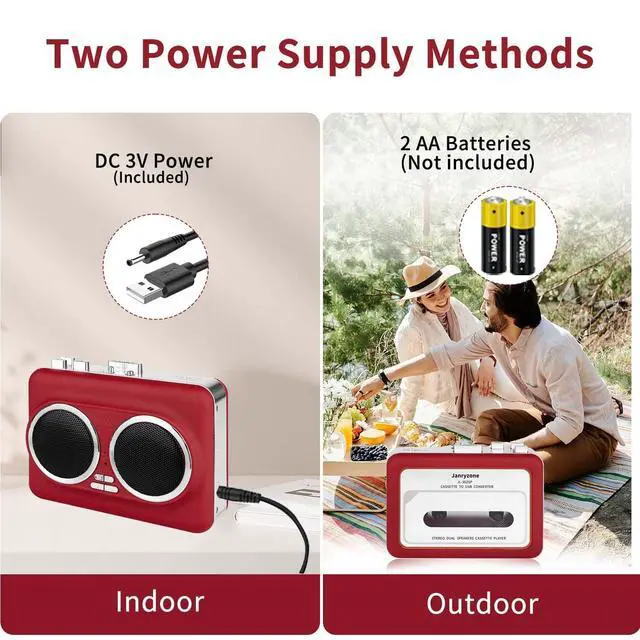 Easy USB interface conversion: Simply insert a USB flash drive or a USB card reader with a memory card (memory card not included) to directly convert cassette music to MP3 format and save it to the USB flash drive, without needing a computer or software. ^^ Dual Power Supply OptionsEnjoy convenient power flexibility with support for two AA batteries (not included) or the included USB to Type C cable. Remove batteries when using USB power.