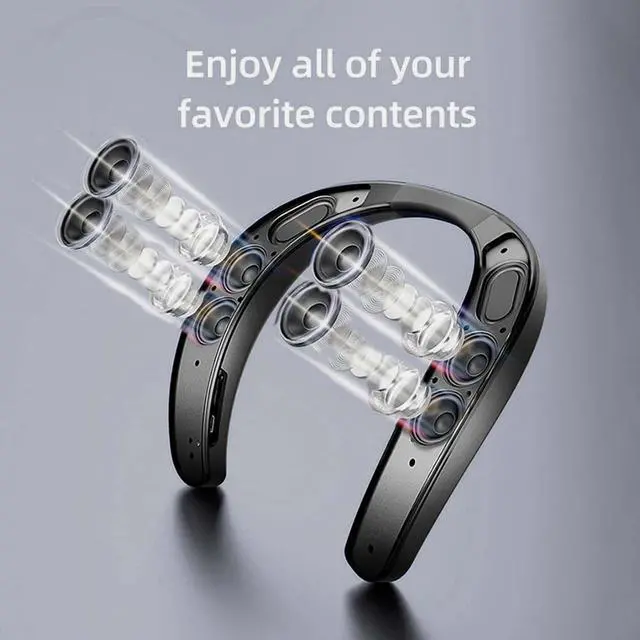 HD Stereo & Anti-Call Echo Design Wearable wireless bluetooth speaker has a dual speaker system, which can provide clear treble and dynamic bass, thereby producing a complete stereo. both sides equipped with echo cancellers to eliminate the echo during a call and improve the clarity. Package Included1* neckband speaker; 1*type-c charing cable; 1*user manual ^^ Bluetooth 5.3, Built-in Mic, TF/SD card slotAdvanced Bluetooth 5.3 chip, ensures stable transmission up to 33 ft (10m) long range. Support SBC/AAC decoding, support A2DP/HSP/HFP/AVRCP protocol. compatible with all Bluetooth-enabled devices such as smartphones, tablets, laptops, TVs, etc.