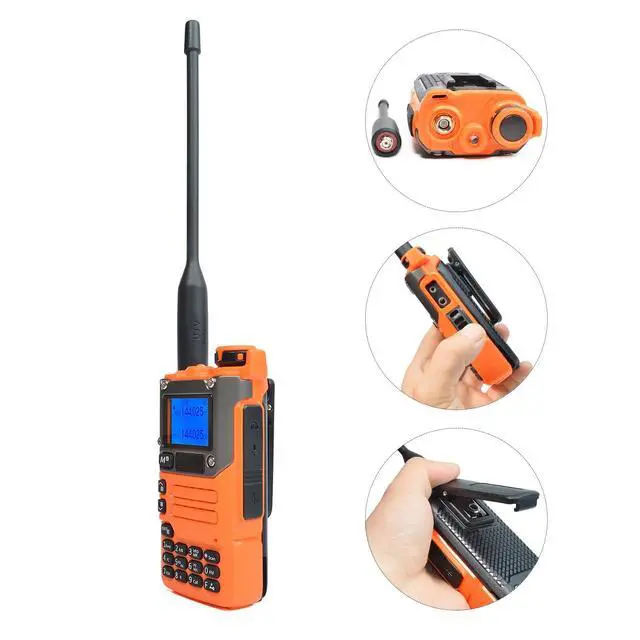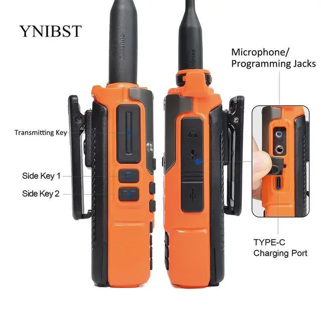 Dual band-The walkie talkie operates within the frequency bands of 144-148MHz and 420-450MHz, and offers 200 channels, meeting different needs of communication. ^^ NOAA Weather Alert-This radio could receive 10 NOAA Weather channels and you can enter or exist NOAA Weather Alert easily. ^^ AM/FM radio-It offers reliable reception for aviation frequency and FM channels, providing clear audio communication. And allowing storage of up to 20 FM radio stations is more convenient. ^^ Multiple charging options-It supports multiple charging options for C-port charging and desktop charger which makes powering up the machine conveniently.