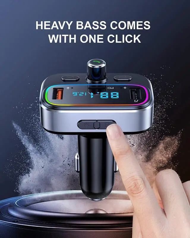 Bass Booster: The FM Transmitter Bluetooth 5.4 with DSP technology could deliver 2x steadier transmission speed without distortion for Hi-Fi stereo music. Music Player FM Transmitter with a 1-key enhance Bass button, you can select your favorite mode between Hi-Fi or deep bass mode by pressing the button "B". ^^ Fast Charging 18W