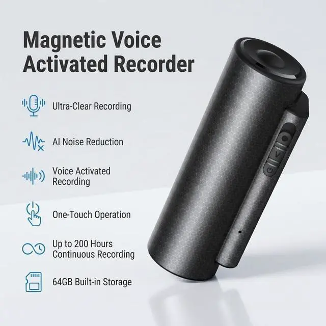 ^^ -: Features a dual-magnet build that attaches securely to most metal surfaces, keeping your hands free and your recorder stable during use.