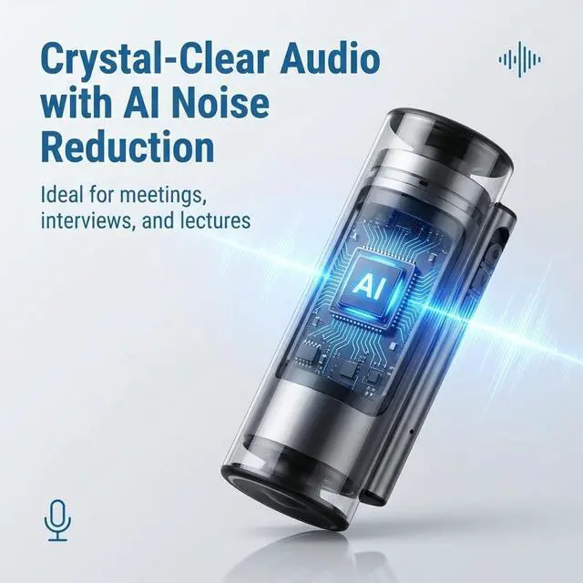 : Built with intelligent voice-focused noise reduction. The DSP processing helps reduce background noise and brings voices forward, so your recordings sound cleaner and easier to understand.