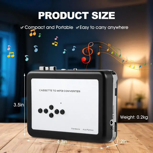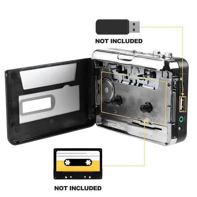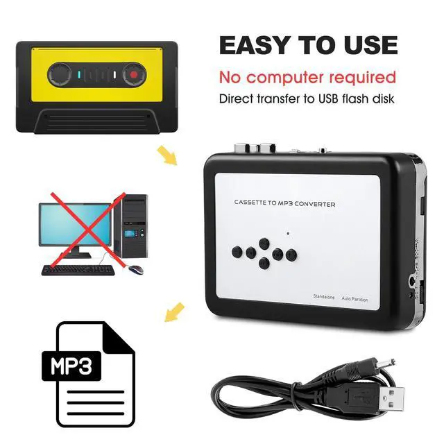 Cartridge-to-MP3 Converter - With this cartridge capture, transfer your old tapes or tapes in MP3 format directly to your USB stick (NOT included). ^^ The USB flash driver can to other devices to play recorded music such computer, MP3 player, portable speakers, and so on. ^^ This tape recorder allows you to play the tape, and the tape recorder can also be used music player. ^^ Digital cassette to MP3 converter, Convert your cassette collection into digital music files, save files directly to stick without having to connect to a computer.
