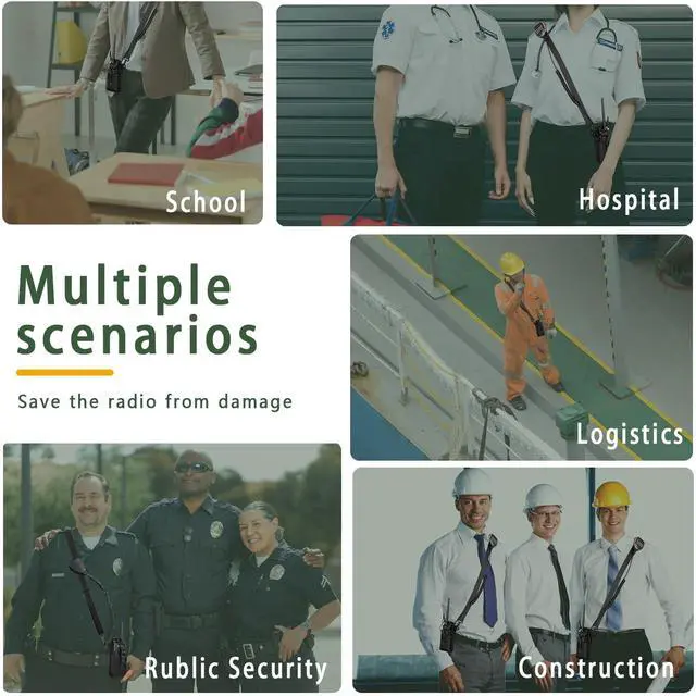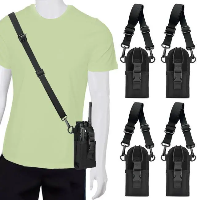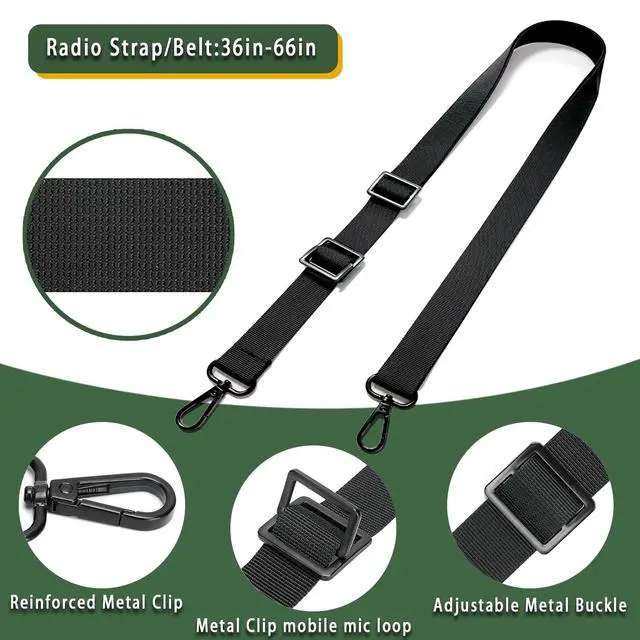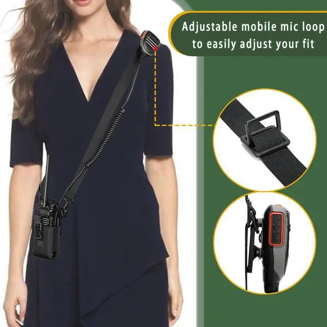 ^^ Easy to wear, This radio pouch is excellent for women in production or security who wear suits and dresses. this radio strap it easy to adjust how carry to fit the situation. that wont take away from your outfit and free your hands when youre not using it. that allows you to carry the walkie while wearing clothes that may not have pockets in them. ^^ High quality, Radio holster constructed by high quality and durable nylon material, adjustable 1 webbing shoulder strap for all-day carrying comfort. black zinc metal hook snaps used strengthen version hardware, easy to attach and solid, ^^ Adjustable Length, Extra long to help cover your entire shoulder.