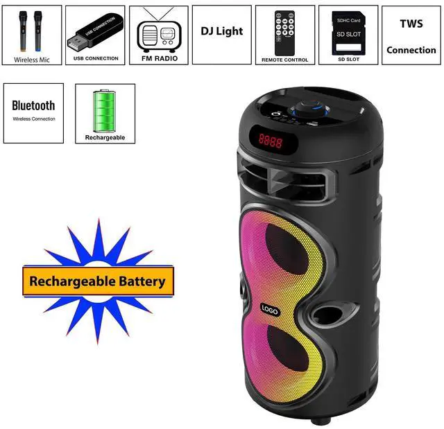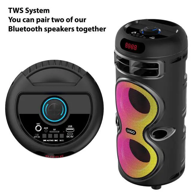 Speaker unit: 2 x 4" woofer TF card TWS function 3.7V -3000MAH rechargeable battery