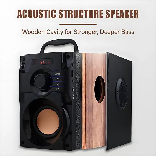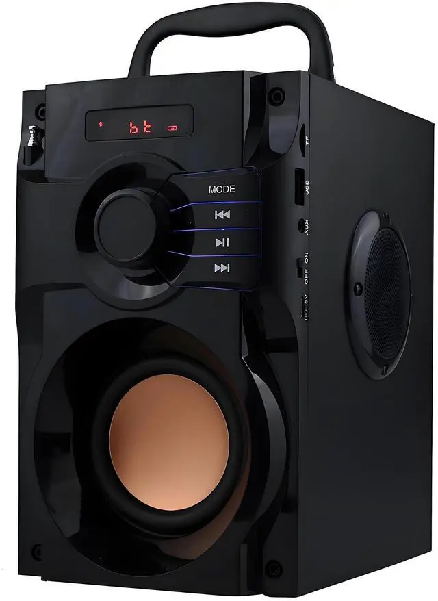 Simple Control: This Bluetooth speaker supports FM radio. It has long range stretchable antenna for receiving better and stronger FM radio signal. The front digital screen displays playing modes of the speaker, and the front big rotating button adjusts the volume easily. These rich options give you free convenient using experience! ^^ Large