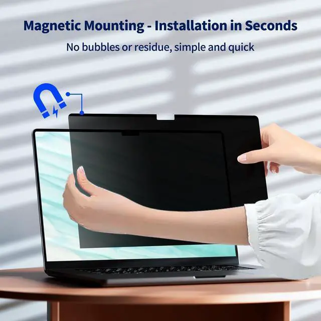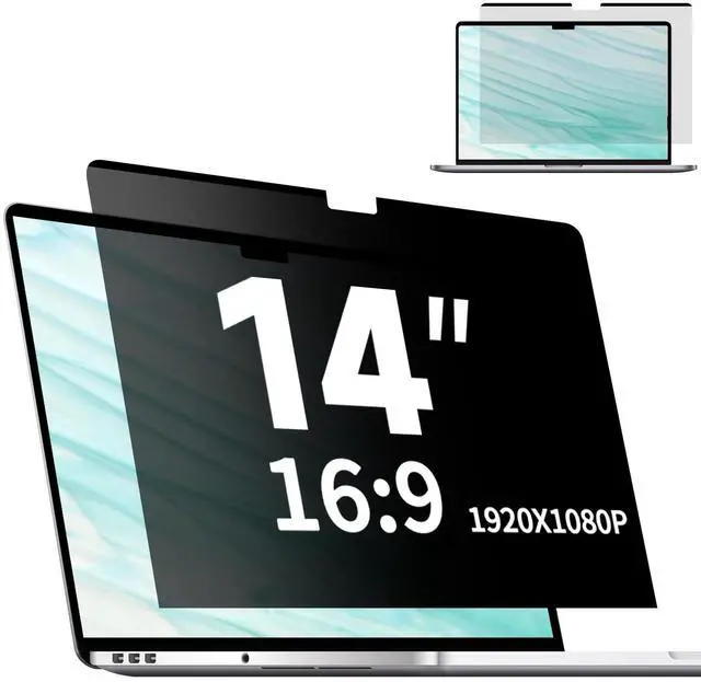 Magnetic Attachment and RemovableThis laptop privacy screen 14 inch 16:9 features a magnetic attachment method for quick and easy installation. A transparent adhesive strip on the bottom ensures the privacy filter stays securely attached to the screen. You can open and close the screen with it on freely. Its removable and washable design allows you to take it off for storage when not in use and reattach it whenever needed. Ideal for office, travel, and on-the-go privacy needs. Please note that the touchscreen will not function after installation. ^^ Perfect Fit and CompatibilityMagnetic privacy screen for laptop is specially design for 14 inch with aspect ratio 16:9 resolution laptops (Not for 14 inch, 16:10 aspect ratio laptops) -DIAGONALLY MEASURED
