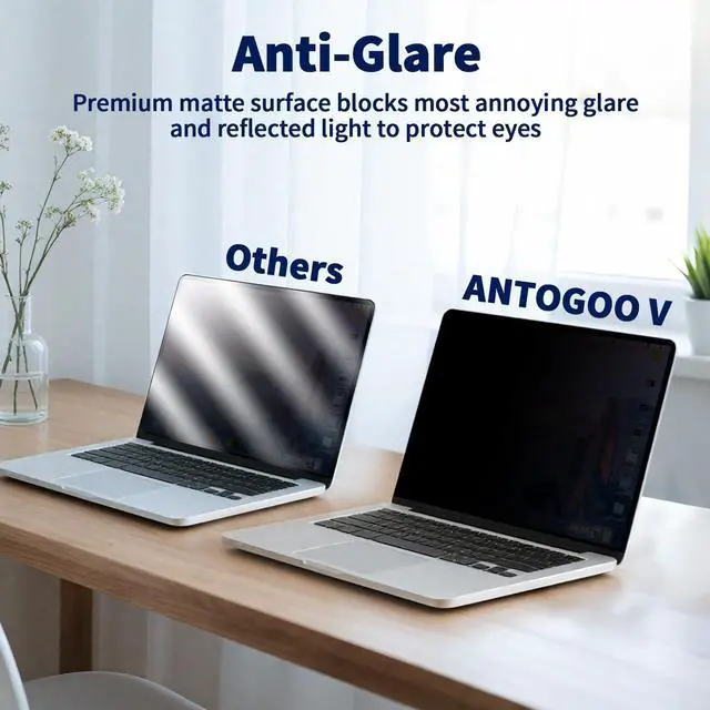 Filter size: 12 3/16" (310 mm) in Width, 6 7/8" (174 mm) in Height. Please confirm your laptop model before purchasing. If you purchased the wrong size, please let us know firstdo not return the item. ^^ Ultimate Privacy ProtectionANTOGOO V's latest magnetic privacy screen 14 inch 16:9 is designed for professionals handling sensitive information or using their laptops in public. With an enhanced viewing angle of 28, it effectively prevents prying eyes from seeing your screen. Enjoy crystal-clear visibility from the front while ensuring complete privacy from the sides. Ideal for healthcare providers, mobile workers, commuters, Back to School and Off to College students, and business travelers, etc. ^^ Eye Strain ReductionThe 14 inch privacy screen proetctor 16:9 features a layered anti-blue light design and multi-layer filtering of harmful blue light. This technology reduces eye strain, headaches, and other adverse effects associated with prolonged computer use. The matte surface minimizes glare and reflected light, making it perfect for long hours of using computer people. ^^ Maintains Screen ClarityThis laptop screen protector 14 inch 16:9 doesn't affect the brightness at all when you look straight at the screen, just the same as if there is no privacy screen in the first place.