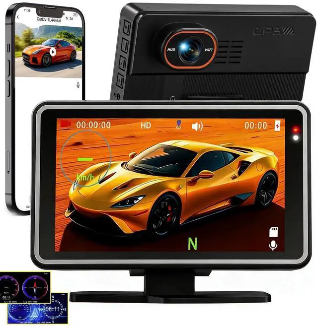 Exposure compensation reduces or increases brightness in excessively bright daylight or in low-light nighttime conditions, ensuring a safer driving experience ^^ [HUD DISPLAY] - The HUD display features multiple functions, such as speed, time, altitude, compass, latitude and longitude, supports speeding alerts, and offers 3 selectable interfaces ^^ [3 MINS EASY INSTALLATION] - The comes with a base that securely attaches to your vehicle's dashboard. Effortless to install and remove, no technical skill required, the dashcam is your ideal choice