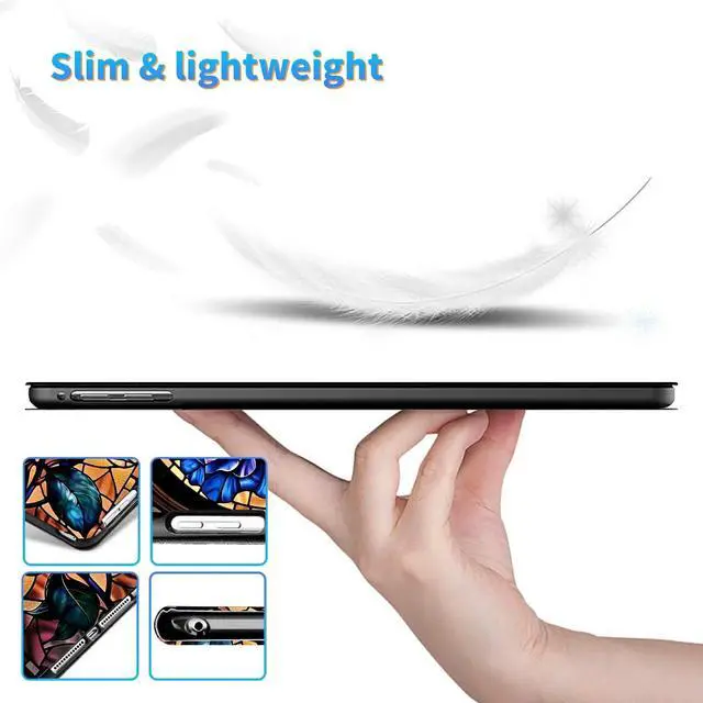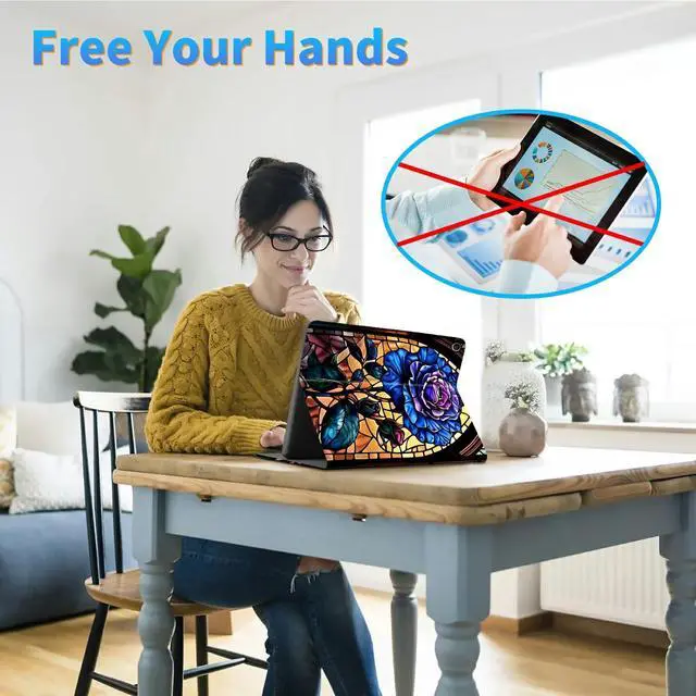 NON-SLIP & FLEXIBLE STAND: The inner surface of the tablet case is made of non-slip frosted TPU rubber, the stand is highly stabilized, which brings you a variety of horizontal stand angles to use (such as office, watching TV, video, typing). ^^
