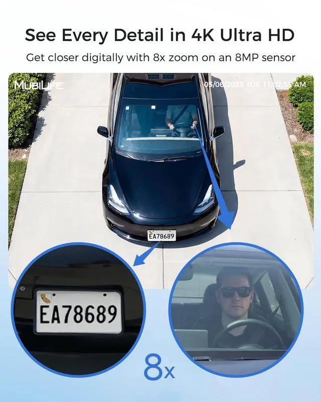 64GB Local Storage & No Subscription Needed Stop paying for cloud subscriptions! This solar security camera system includes a built-in 64GB TF card, storing up to 180 days of encrypted video footage locally. Your data remains completely private, secure, and under your control with zero hidden costs ^^ 4K Ultra HD & Color Night Vision See every detail day or night. Featuring an upgraded 8MP lens with 8x digital zoom, this outdoor security camera captures crystal-clear video to easily identify faces and license plates. The powerful 600-lumen spotlight automatically illuminates the dark, providing true full-color night vision for ultimate home security ^^ AI Motion Detection & 360 Auto-Tracking Say goodbye to false alarms from swaying trees.