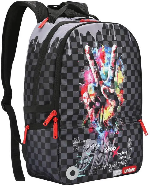The stationery will be collected in front pocket. ^^ INDEPENDENT ITEMS AND LAPTOP INTERLAYER- computer backpack has three main zippered compartments and one small pocket on the top, can keep your 15.6 inch, 14 inch laptop in the separated space. The stationery will be collected in front pocket. ^^ APPLICATION- You can take it as fashion backpack in graffiti design, kawaii back packs, casual daypack or travel backpack for hippie backpack.