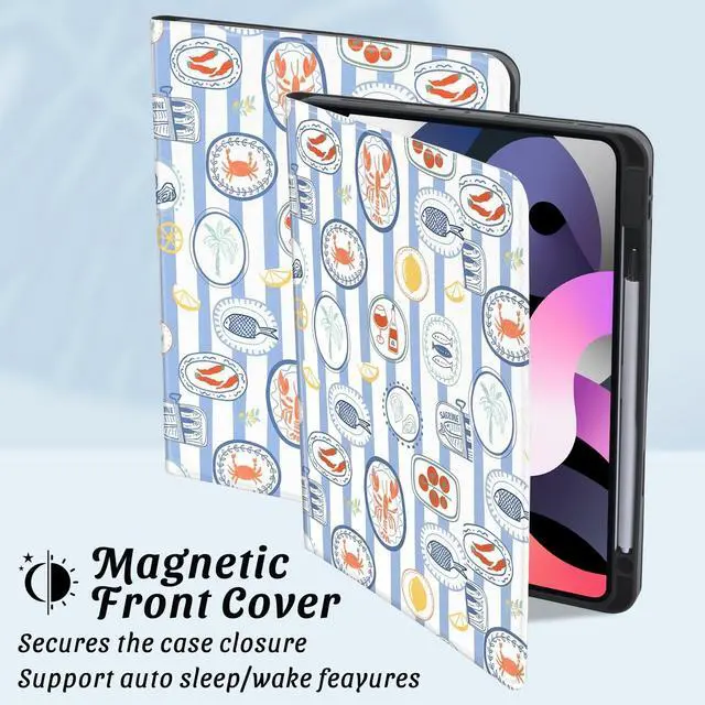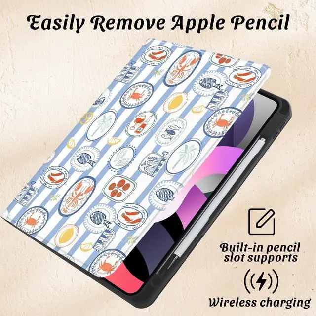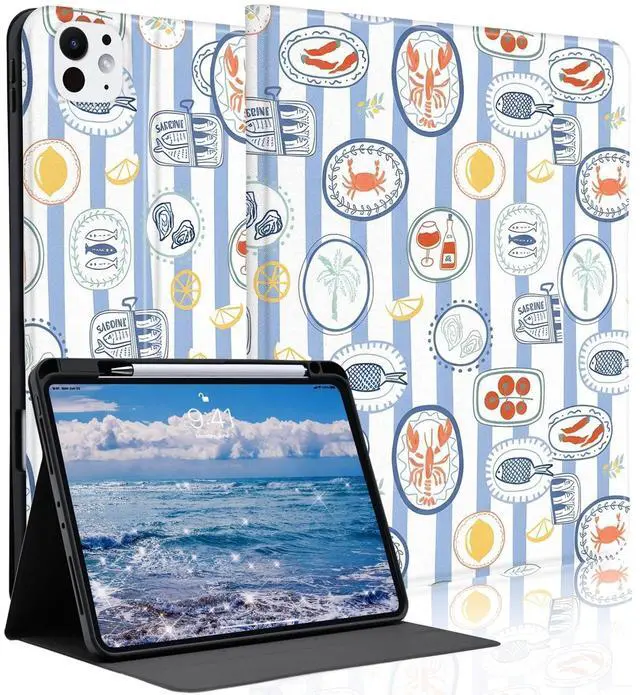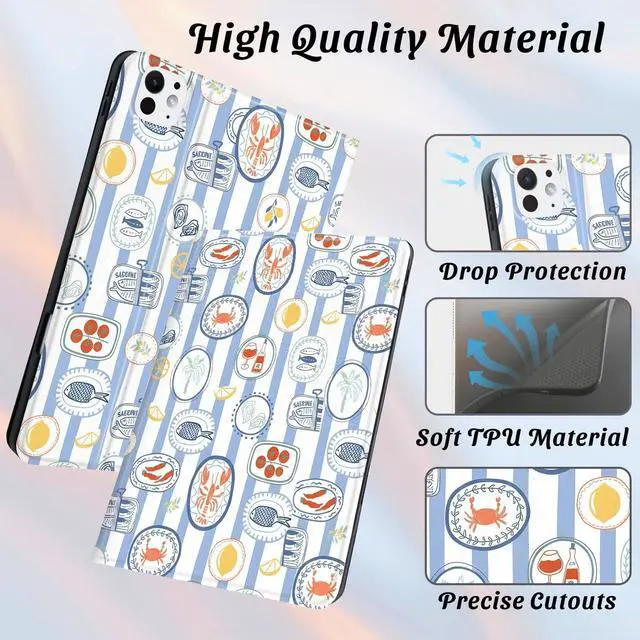Idocolors Cute Seafood Case for 10.9" iPad A16 2025/2022(10th/11th Gen) with Pencil Holder, Auto Wake/Sleep Leather Soft TPU Back Cover for Women Girls