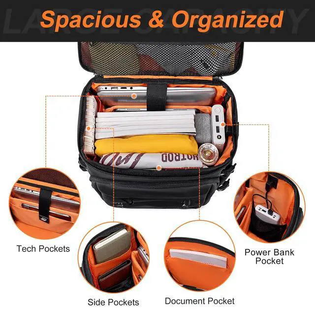 SMART ORGANIZATION: FENRUIEN stylish top loading backpack offers multiple pocketsincluding a 15.6 laptop pocket, the bright orange lining that makes finding your belongings quick and effortless ^^