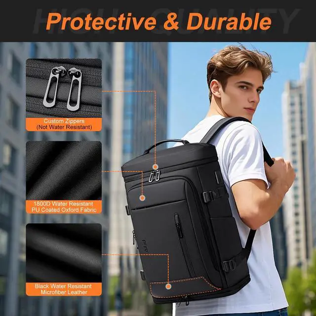 SLEEK & RUGGED: Durable 1800D Oxford combined with microfiber leather and brand custom zippers makes personal item backpack both sleek and practical. Reinforced stitching add strength for everyday use ^^