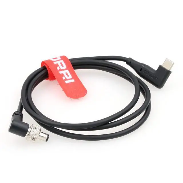 DRRI Right Angle Locking 5.5 X2.1mm DC to Right Angle USB-C PD Fast Charging 12V Power Cable for Atomos Ninja V Monitor