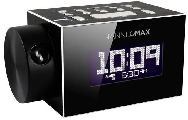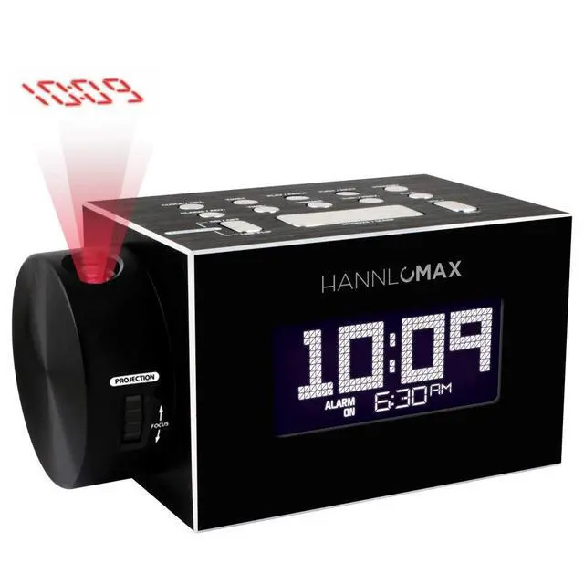 Clock Projection: The projector displays the time via a bright red projection light onto a wall, ceiling or any surface for viewing in a darkened room.