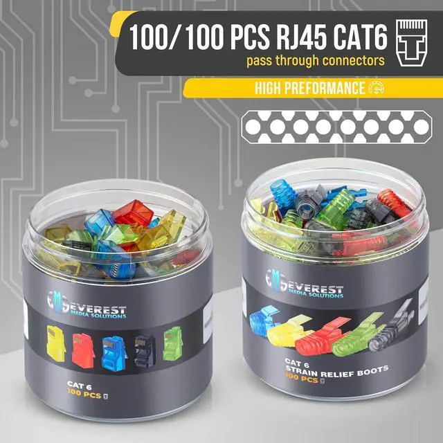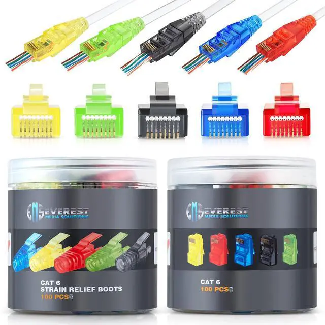 Youll also maintain bend radiuses for standards compliance. ^^ Assorted Colors will allow you to manage and organize your networking task and will save you time and money on other marking equipment ^^ In the Package 100 Pcs of Category-6 push through connectors, and 100 Pcs of Cat6 strain relief boots